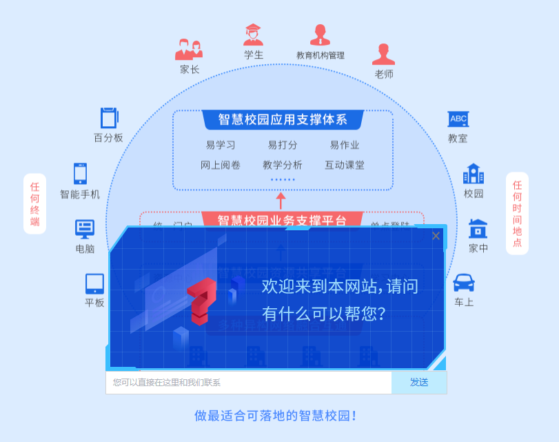 校園管理系統(tǒng)是移動(dòng)終端或電腦終端聯(lián)合教育監(jiān)管部門、校園云平臺(tái)和無線基站對(duì)校園進(jìn)行管理。